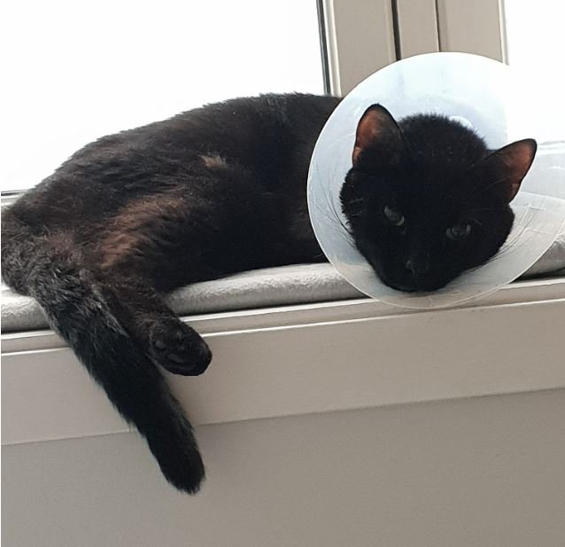 Satchi har en krage på (for å beskytte et infisert sår på kinnet), og derfor etterlyser jeg han allerede nå etter kun noen timer siden han er veldig sårbar. Han rømte ut vinduet, og skal ikke være ute på en uke, da han trenger medisiner og tilsyn. Han er litt furt pga kragen, så gjemmer seg potensielt veldig godt.