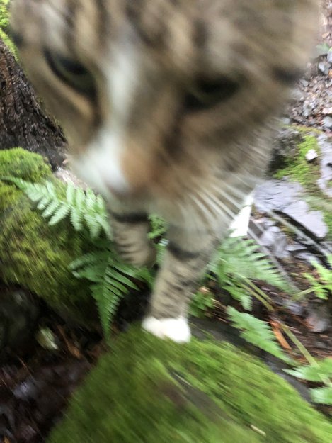 Møtte på denne veldig kosete katten ganske langt inne i skogen, der stien tar seg opp til Gråmagan/Setertjern.