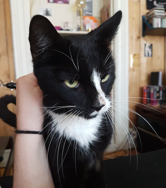 Vi tror han kan ha dratt ut for å oppsøke andre katter, eller bare generelt ville være ute. Han er fosterkatt som nylig har måttet bli innekatt. Han har vært veldig skremt og gjemt seg før, men da har det alltid vært et sted vi har kunnet sett han.