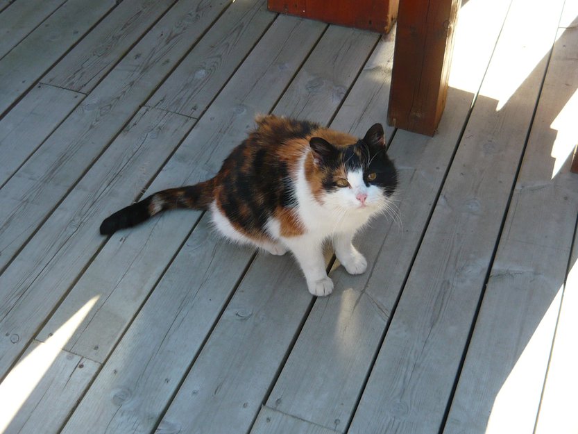 I mai i år lot hun seg imidlertid bestikke, og har til og med vært en tur hos dyrlegen, som ikke kunne avgjøre verken alder eller hvorvidt hun er sterilisert. Hun er ikke chippet.