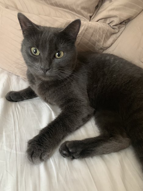 Katten er 2,5 år er grå og litt spraglete ,den er ID merket ,kastrert,veldig sky