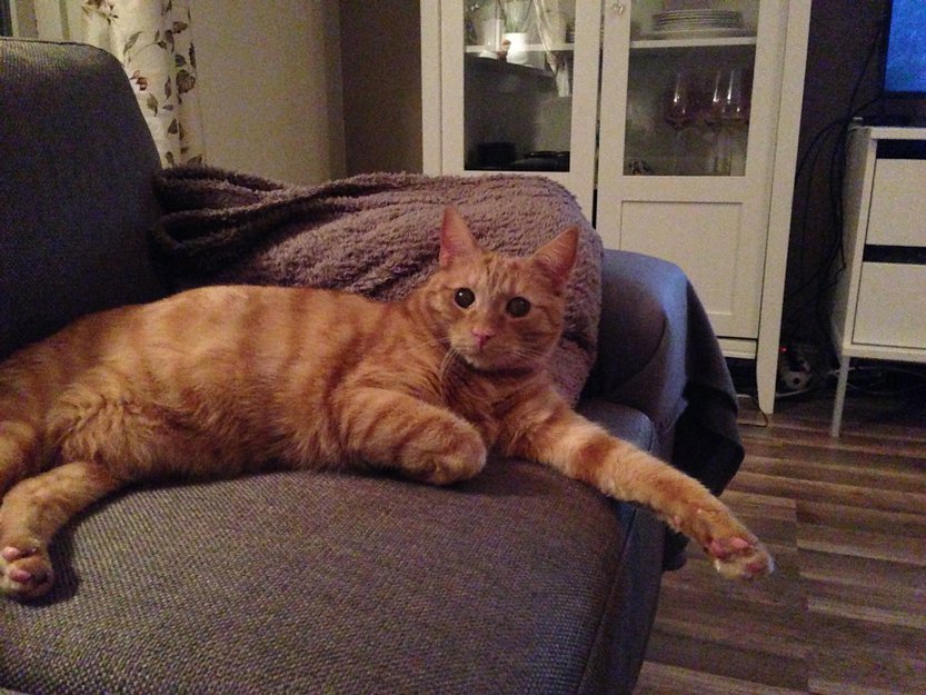 7,5 kg huskatt. Litt hengemage, høy og stor gutt.