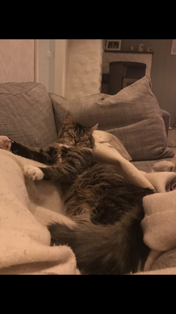 Grå/brun med hvit hunnkatt var savnet i Grimstad