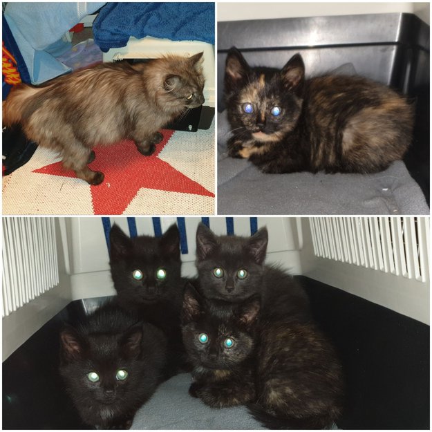 Kattungene er 2 skilpadder, 2 svarte og en grå.