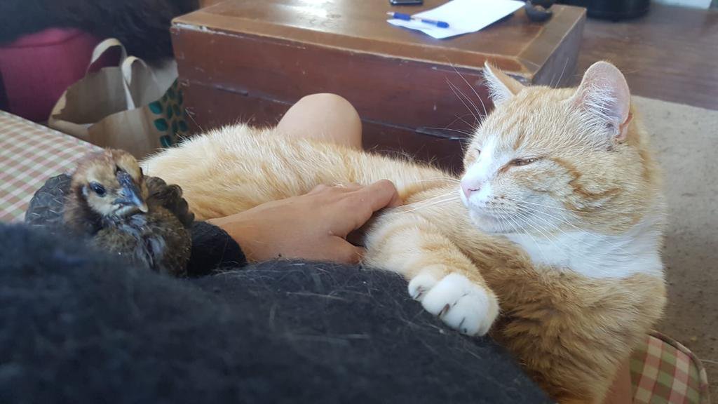 Lobo er 1 1/2 år, er medium stor og har halvlang pels. Orange og hvit. De hvite flekkene i ansiktet er litt usymetriske.