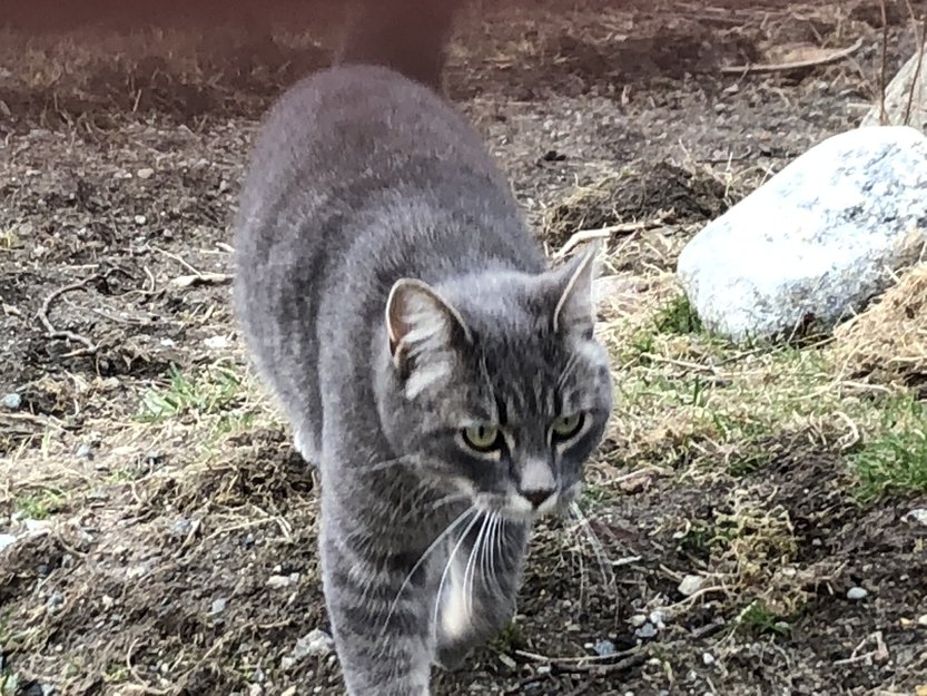 Katten er mye ute, men kommer hjem om natten og et par ganger ila dagen for å spise, dukker også opp når den blir ropt på. Har ikke kommet hjem til natten eller for å spise.