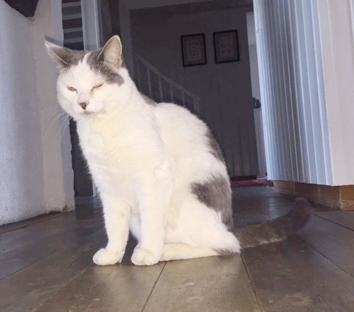 Snuppa er en liten korthåret hunnkatt på 9 år, med flekker i fargene hvit og grå. Hun har en ødelagt tårekanal på det ene øyet som gjør at hun kan se sår ut i øyekroken og har ofte det øye litt lukket.