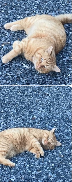 Katten har blitt matet av snille mennesker. Den er veldig sky. Gått ute lenge.