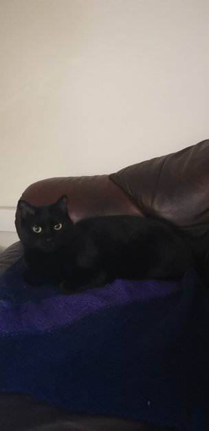 Hun er en ekstremt engstelig katt og er innekatt fordi hun har angst. Hun er ikke oppsøkende og er redd for mennesker, men hun er ikke aggressiv. Hvis noen ser henne vil jeg vite hvor, så jeg kan sette opp felle, da det er lite sannsynlig at hun vil nærme seg fremmede.