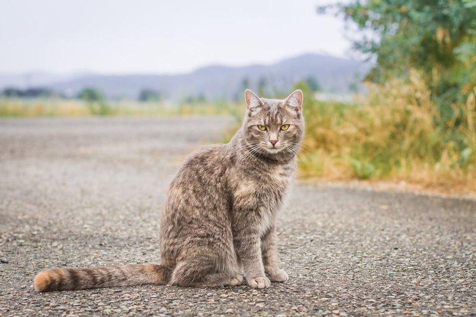 Grå med beige/oransje detaljer. Svakt mørkere tigerstriper. Kjennetegnes lett ved oransje haletupp.