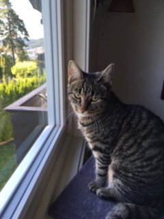 En søt liten pusejente på ca 6 måneder snek seg inn hos oss :). Har ikke funnet ut av hvor hun tilhører til nå. Har gitt henne mat og satt opp toalett, men det er litt problematisk da mine foreldre (dette er huset deres) Ha en meget territorial hunnkatt, som ikke ville like å møte henne. Vi holder dem separat, men som sagt noe vanskelig å koordinere.