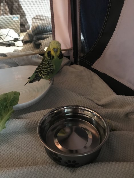 Undulat funnet i går kveld. Den er gul/grønn/sort spraglete.