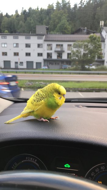 Ble funnet på taket av en rema 1000 på skillebekk. Måtte lure den inn i bilen ved å gi litt brød, den har blitt tatt med hjem og står i bur. Håper eier kan ta kontakt snarest!