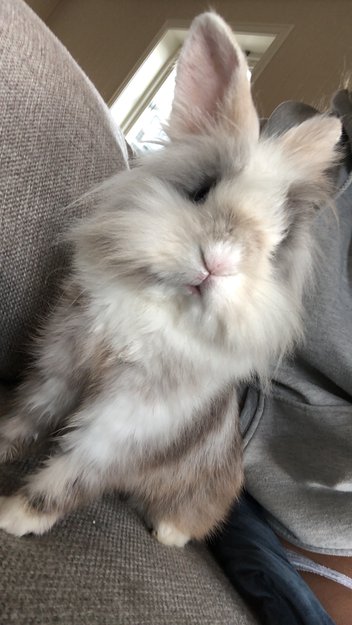Han er en løvehode, med litt hermelin. Grå og hvit i fargen. Blå øyne.