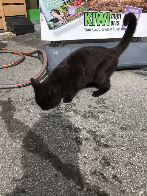 Helt sort katt har slått seg til ved Kiwi/Skeidar på Otta. Tam og kjælen, men veldig sulten. Virker frisk, men skriker veldig. Finner ingen tatoveringer, men har ikke fått sjekka om den er chips.