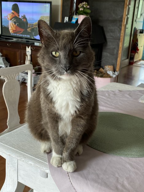 Grå med hvitt bryst hannkatt var savnet i Arendal