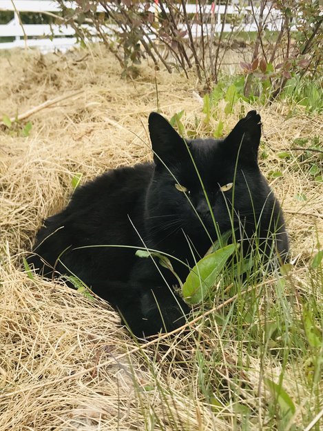 Katten er korthåret sort ,går over i rustbrun i sola med gull øyne og han er kastrert og ID merket med chip.Han har det karakteristiske revne venstre øre.