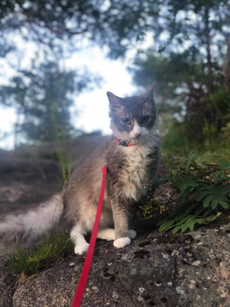 Grå,hvit, rødlig. hunnkatt var savnet i Fredrikstad