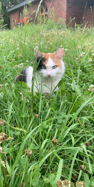 Grønne øyne og hjerteformet mønster på ryggen. Veldig kosete og glad i mennesker.