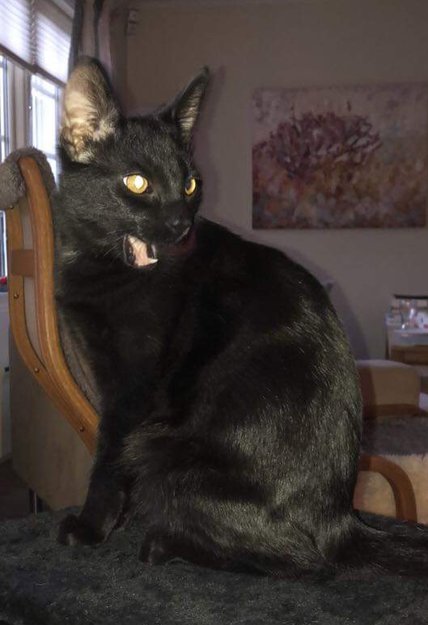 Ser svart ut men er brun / svart hvis du ser nøye med godt lys. Har noen vite hår på magen. Litt store ører og lang hale. Sort tatovering i venstre øre som signaliserer at han har chippet seg.