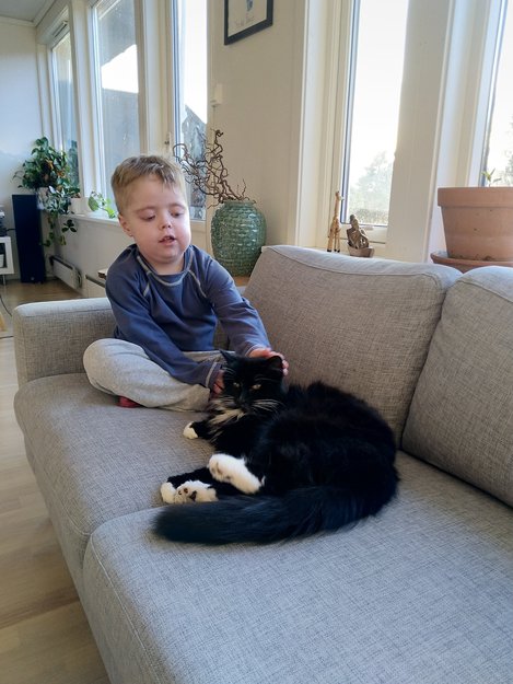 Fann katten i ei Facebookgruppe for sakna kattar. Ho var i nabolaget som me hadde mistenkt. Chippen i nakken har slutta å fungere og ho har nok ikkje kome seg inn. Ny chip og sjekk hos dyrlege står for tur.