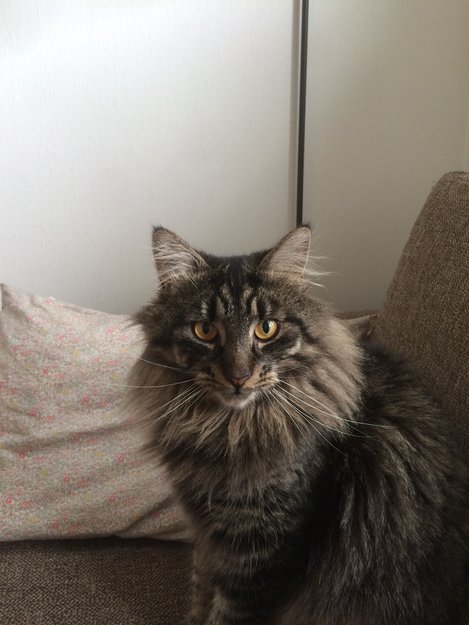 Kompis pleier å komme hjem hver kveld, men har vært borte siden 8/8. Han er ganske glad i folk og kan følge etter og gå seg bort.