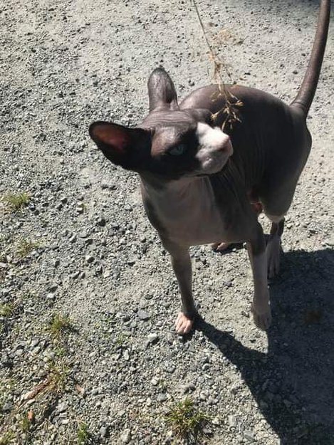 Pelsløs spynx katt med hvitt nase