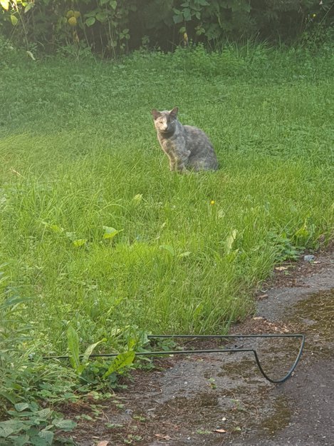 En katt som er skeptisk til nye personer og virker redd for nærkontakt.. katten har fått mat/vann av sykepleiere på SSE