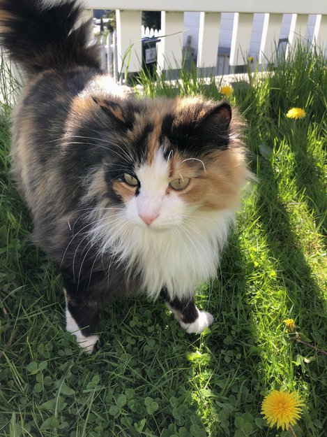 Kortere pels enn på bilde nå på sommeren. Stor hale.