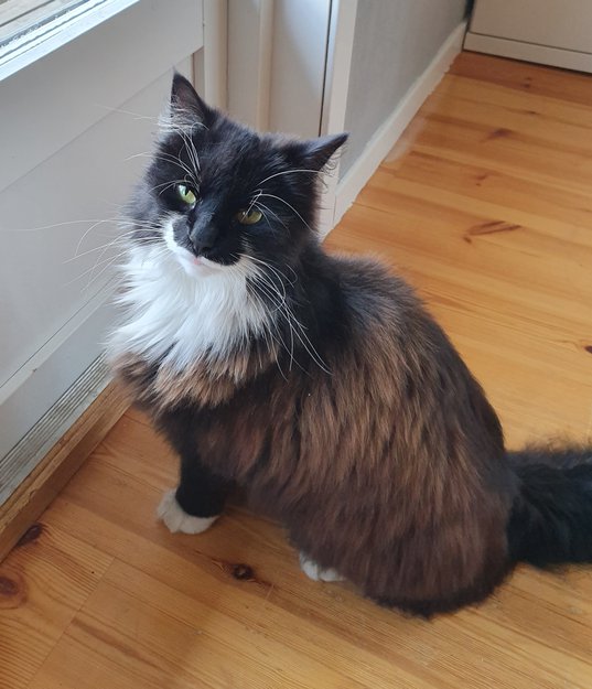 Katten vår har aldri vært borte mer enn i 2 dager, og nå har hun vært borte i snart 2 uker. Hun er veldig kosete, sosial og nygjerrig. Det kan tenkes at hun syns det er litt slitsomt å bo hjemme for tiden siden vi har fått valp, men hvis noen har sett henne eller vet noe setter vi stor pris på beskjed for vi savner henne veldig.