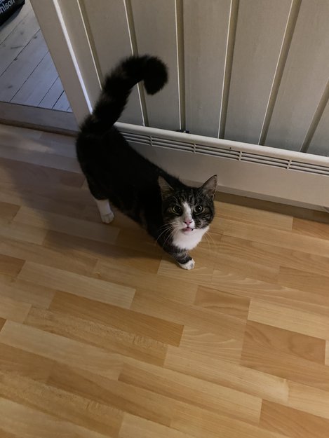 Noen som kjenner til denne katten? Han/ hun er ofte på besøk til oss gjennom katteluken for å få mat. Virker vennlig og ikke redd for mennesker, så jeg regner at han/ hun har et hjem.