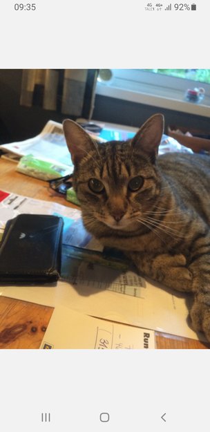 Jeg slapp han ut på søndag 16.08.2020 klokken 15 og har ikke sett han siden. Han kommer vanligvis inn flere ganger daglig. Jeg har en katteluke med chip, så han kommer og går som han vil, men etter klokken 19 kan han kun komme inn og ikke ut.