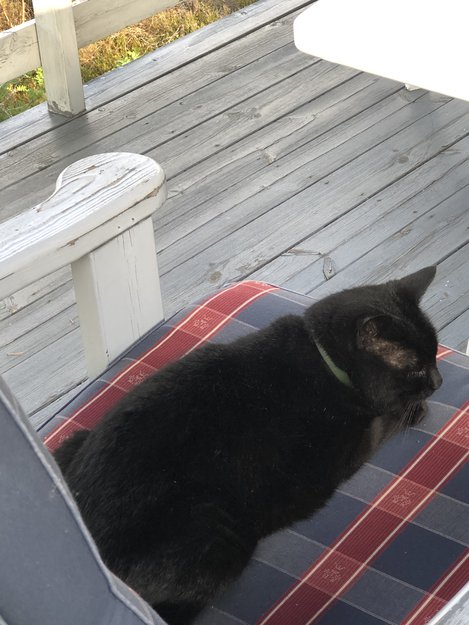 Ingen spesielle kjennetegn. Helt sort. Prater mye og er veldig kosete