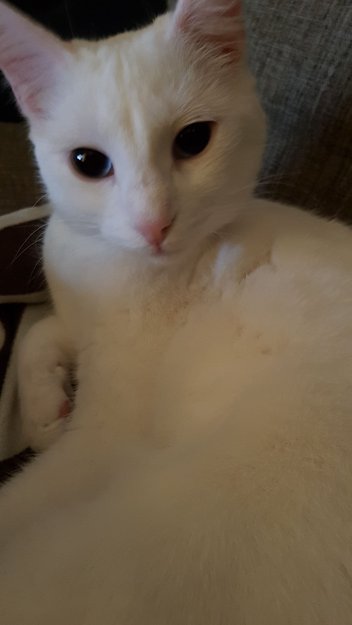 Hun er helt hvit, korthåret med blå øyne. Hun er chippet med ID-tatovering i øret. Hun er vanligvis skeptisk til folk og kommer som regel ikke bort til ukjente, men vi hadde blitt utrolig glad om noen hadde sett henne og kan fortelle at hun har det bra.
