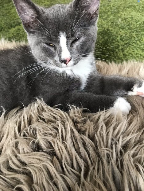 Kattepus lekte med oss i hagen og så ble hun borte. Født i Mai. Veldig kosete, har høy maling så snart hun kommer nær. Hun er også veldig nysgjerrig og eventyrlysten. Grå med hvitt på nesen, brystet og potene. Litt hvitt på magen. Har vært ute og lett/ ropt både om dagen og sent på kveld.
