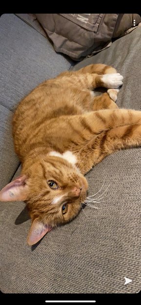Det var ei dame som så innlegget mitt på Facebook. Hun tok bilde av han i dag og sendte på innlegget mitt og spurte om det var vår katt. Så fikk sønnen min lokket den med seg hjem. Han er fortsatt veldig skremt men han skal få være inne i rolige omgivelser til han blir trygg og glad igjen. Så en time til veterinær etterhvert.