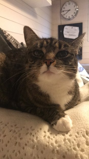 Ganske liten til å være en fullvoksen katt og ser gjerne litt tynn ut. Katten har mørk snute til tross for at hun har litt hvit pels i ansiktet og på halsen. Hun har også litt hvitt på magen og helt nederst på potene. Ellers er katten veldig kosete og lite sjenert, selv overfor nye mennesker.