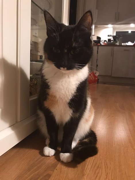 Organsje, svart og kvit katt har gått seg bort fra Dr. Jensens veg 59, Skudeneshavn.