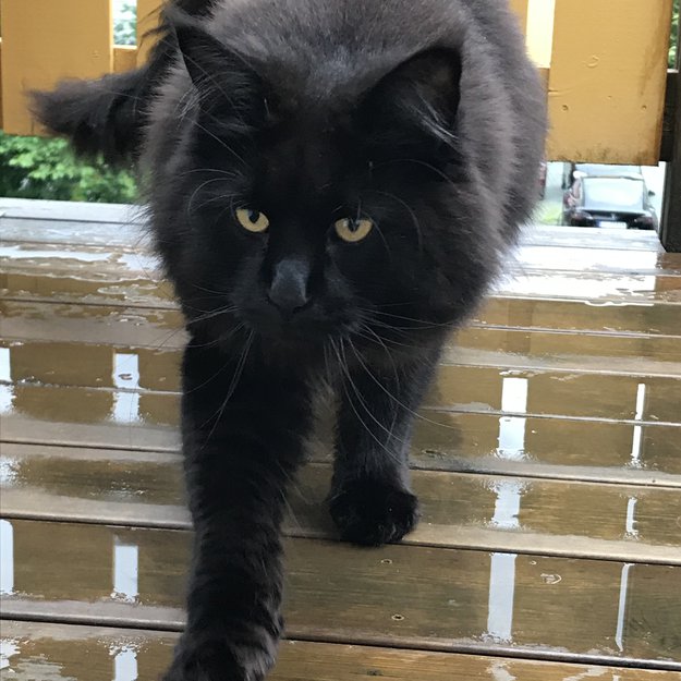 Er redd biler og høye lyder og blir fort skremt av dette. Hun er ekstremt nysgjerrig og skal gjerne utforske alt som utforskes kan, så kan ha gjemt seg i en garasje/bod. Pelsen hennes fremstår som svart i dunkelt lys og kan gå i ett med mørke overflater/skygger mm. Kan derfor være vanskelig å oppdage om man ikke skrur på lys.