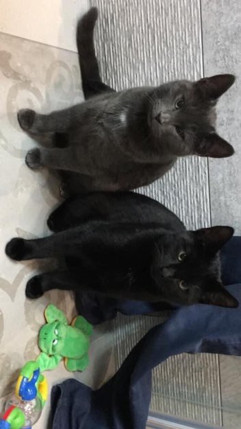 Svart, men har kanskje 5 hvite hårstrå på brystet. Liten av strl. Kan være veldig tynn nå om fortsatt i live. Han er kosete, men samtidig redd av seg.