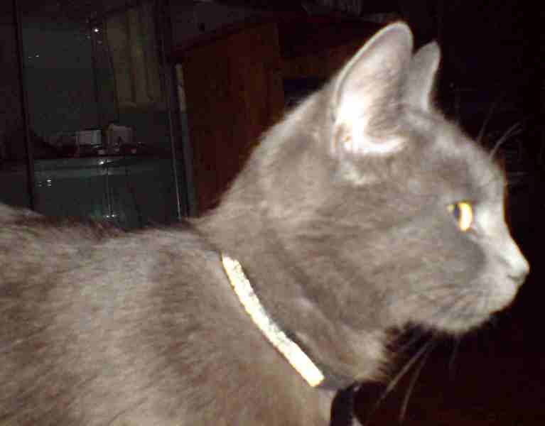 I vinter oppdaget vi en ung katt som vanket i nabolaget. I flere uker holdt den til i området, tagg om mat og husly. Den var syltynn og viste ingen tegn til å bo noen sted. Til slutt fikik den komme inn til meg og har siden vært her. Den er umerket og jeg har prøvd på forskjellig vis å finne eieren uten å ha lyktes. Etter å ha sett bilder på internett, tror jeg ganske sikkert det er en Korat. Rart ingen savner den?