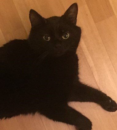 Kattarina er svart med litt bruntoner i solen. Hun er 7 år gammel og litt overvektig. Øyenfarge er gul.