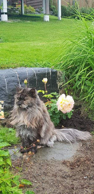 Vår katt forsvant plutselig fra vår veranda i Moavegen, fredag kveld, 4. September. Den pleier aldri å gå noe sted, men liker ofte å vandre rundt i hagen, eller fotfølge oss rundt i hus og hage.