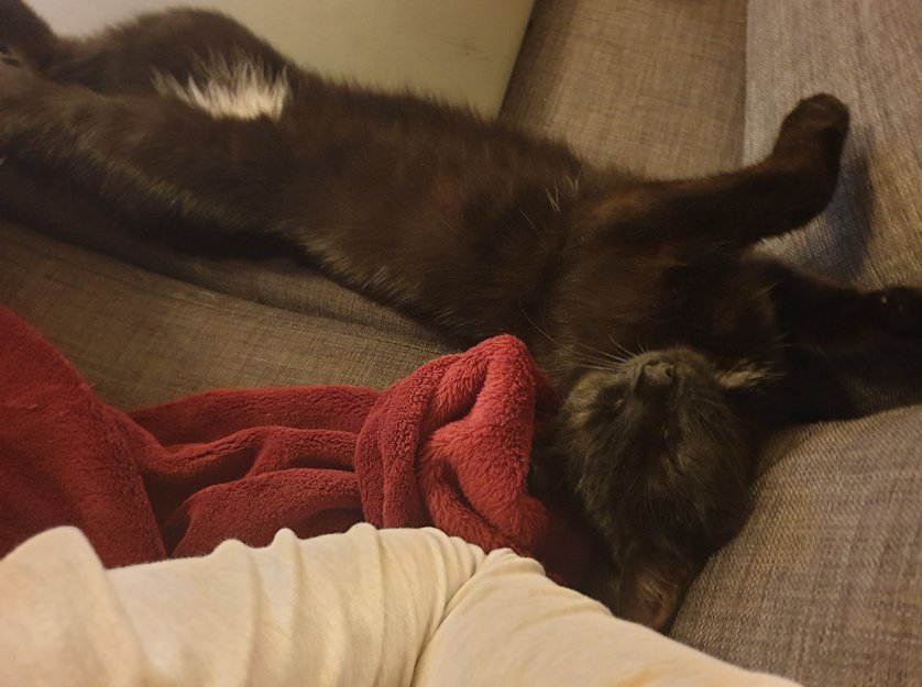 Blue er en liten katt (3,5 - 4 kg), korthåret, helt sort med litt hvitt på brystet og under magen. Hun har veldig grønn øyne og "feminine" ansiktstrekk.