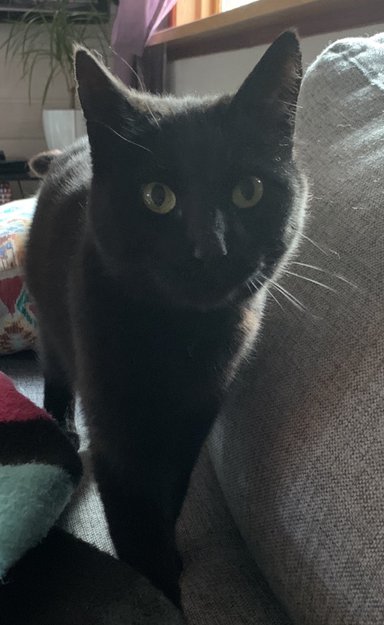 Luna er helt svart. Hun har bare et par lysere stripper på hode og bakk på ryggen