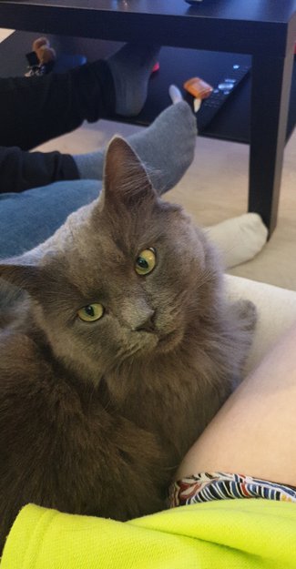 Gaston er en grå kastrert, chippet hankatt med gule øyne. Han er litt folkesky/skeptisk, spesielt utendørs da han har vært hjemløs tidligere.