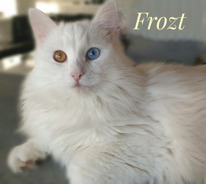 Frozt er en odd eyed katt, som betyr at han har et grønn/gult og et blått øye. Han er en ung katt på 1.5 år. Veldig tillitsfull og kjælen.