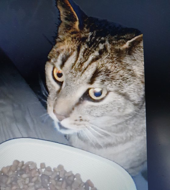 Katten ble først observert i Engaveien på Åkrene. Så ble den fraktet til Sørum og Fet veterinærkontor i Øyaveien på Fetsund der den klarte å stikke ut av bilen. Katten tilhører i Garderåsen og kan være på vei dit. Dersom noen ser katten, ta kontakt med Dyrebeskyttelsen Lillestrøm og omegn på 90746632 eller med Sørum og Fet veterinærkontor på Fetsund, 63881625.