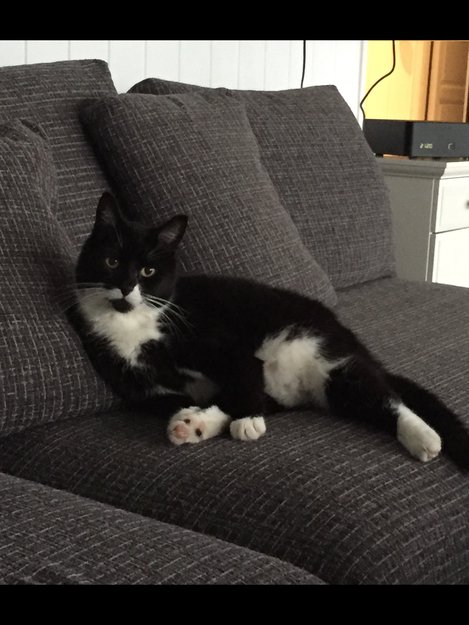 Katten ble borte fra sitt hjem natt til tirsdag 22/9. Det er svært uvanlig at han er borte så lenge, for han trives best på sofaen. Og er sjelden ute mer enn 1 time avgangen.