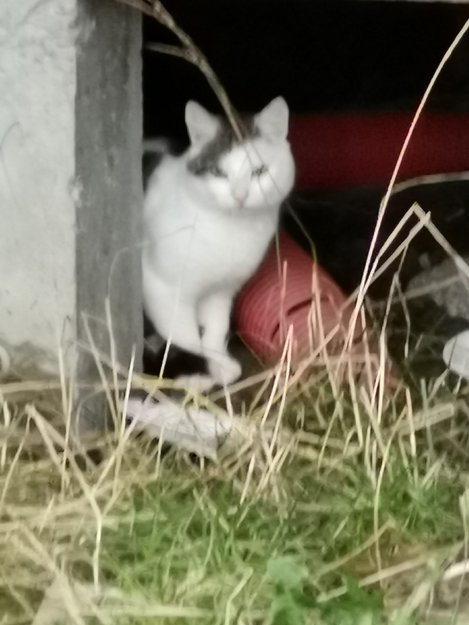 Denne katten går på uis området og "bor" under noen studentboliger. Den lever på matrester den finner i bossdunkene. Er det noen som savner denne eller har mulighet til og gi den ett hjem?